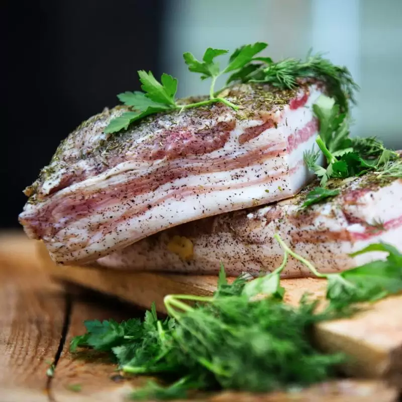 Сало — продукт, который не нуждается в лишнем представлении. Белорусские семьи передают рецепты засолки из поколения в поколение. Кто-то предпочитает мягкое и тонко нарезанное, кто-то любит с чесноком или специями. Главное, чтобы сало было домашним — ароматным, плотным по текстуре и с заметной мясной прослойкой.